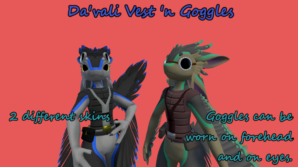 A free clothing set containing vest and goggles for the Da'vali, containing Blender and Photoshop files for editing.